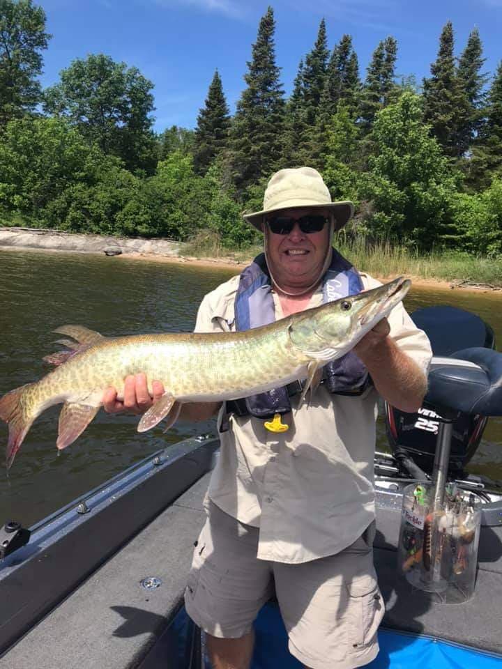 Four personal bests in one boat in one week! Dan with a 43″ muskie, Mike with a 47″ muskie, Nick with a 28″ walleye and Nick again with a 44″ muskie during the week of June 15-22.