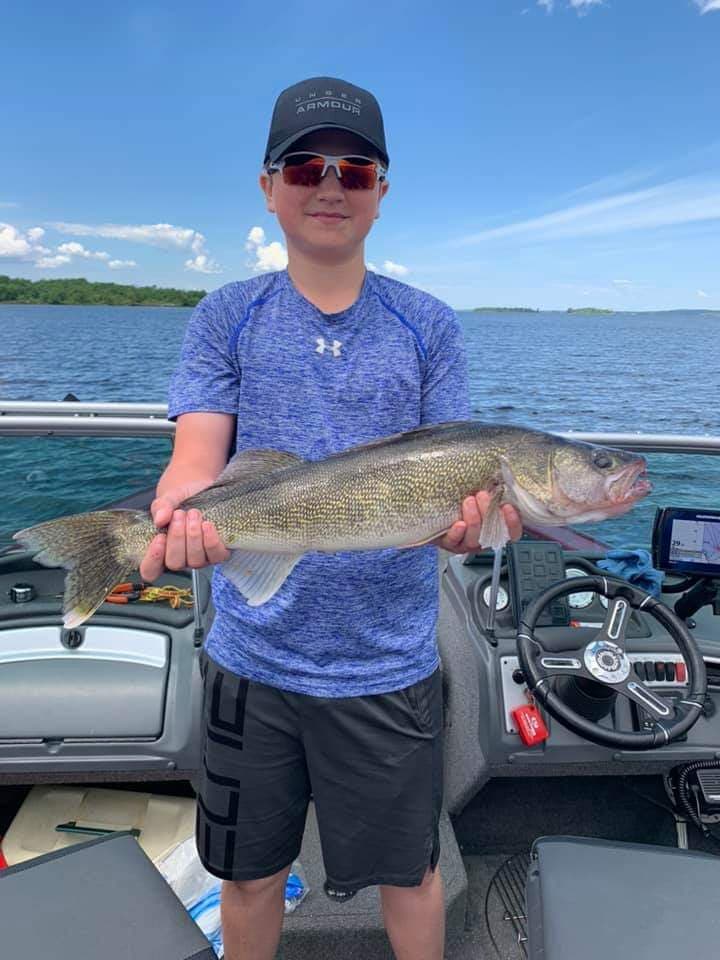 Great photo memories from the Gifford family’s trip June 23-28, 2019. Dawson is pictured below with his personal best 26″ walleye caught, photographed and released on the last fishing day of the trip before leaving the following morning.